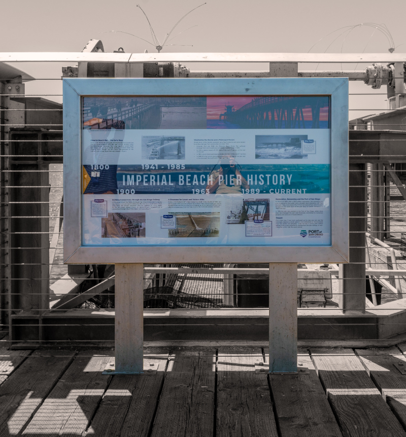 Led the design of a new Port-branded sign to be installed at the iconic Imperial Beach Pier. The sign details the Pier's history, educating visitors with information and historical imagery. The sign was produced in coordination with the Port's Parks & Recreation department and included buy-in from local elected officials and stakeholders, with over 30 rounds of revisions in the process.